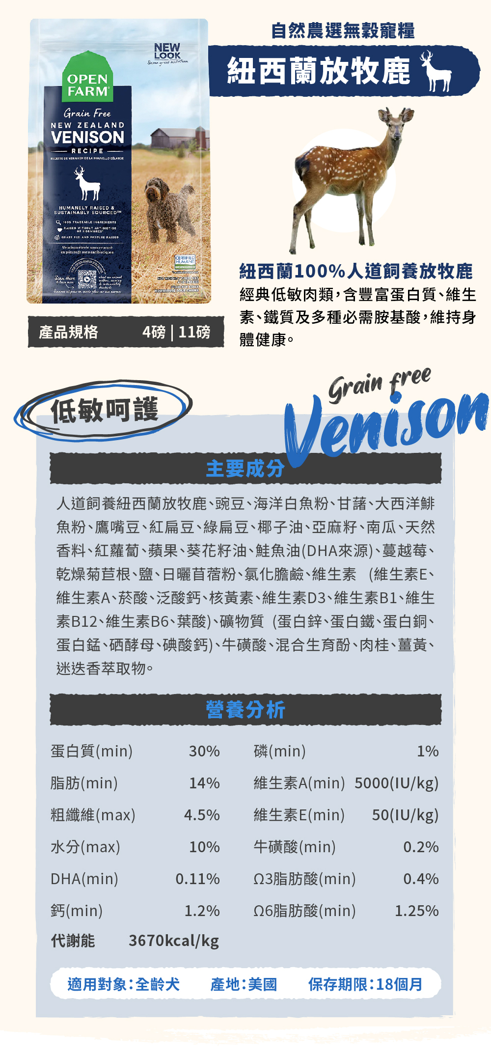 開放農場 - 自然農選無穀寵糧 - 紐西蘭放牧鹿11lb - 全齡犬