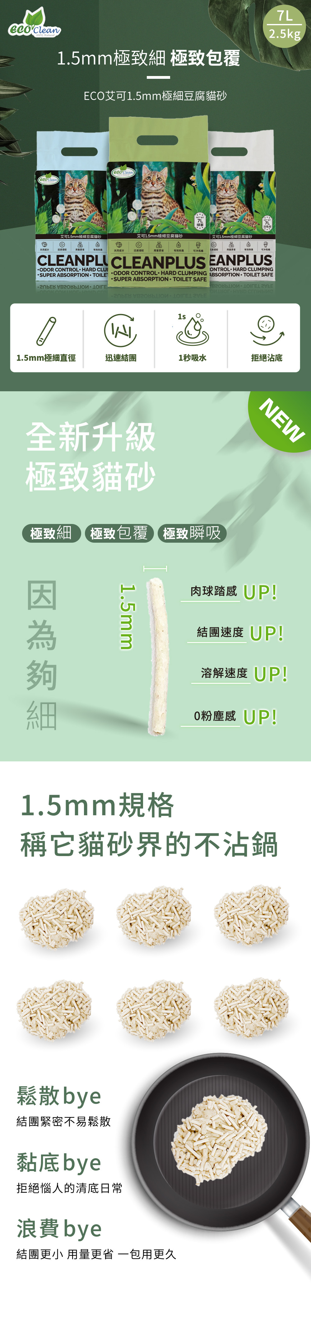 ECO 艾可1.5mm極細豆腐貓砂(7L/2.5kg)-綠茶-6包/箱