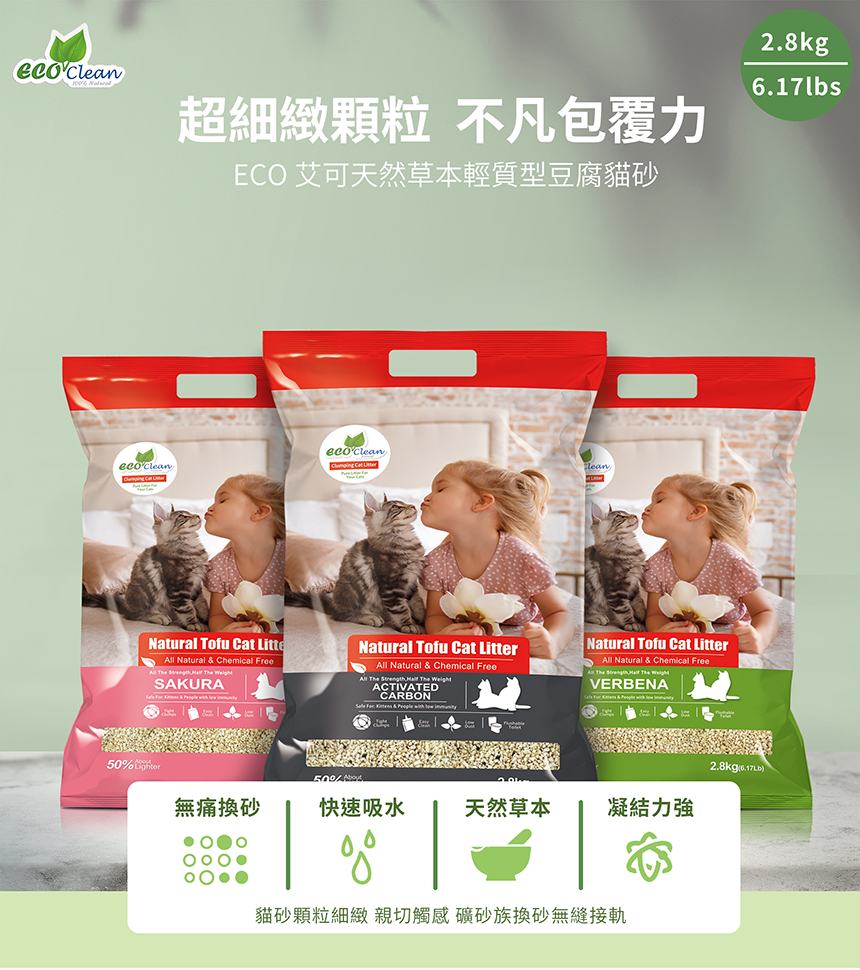 ECO艾可天然草本輕質型豆腐貓砂(2.8kg/6.17lbs)-馬鞭草-6包/箱