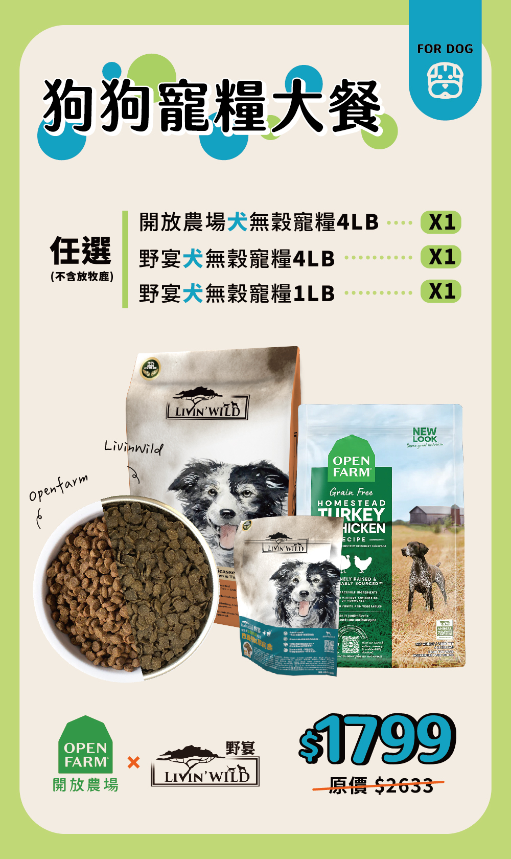 【Livin' Wild野宴】無穀寵糧-1LB-全齡犬 × 1包