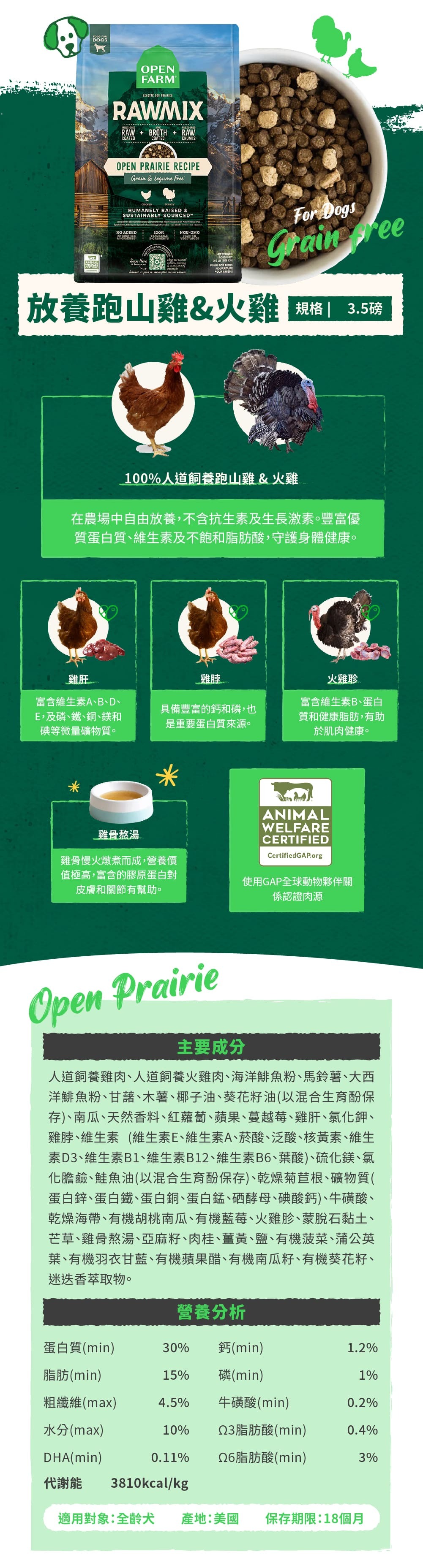 開放農場 - 混凍乾無穀寵糧 - 放養跑山雞&火雞3.5lb - 全齡犬
