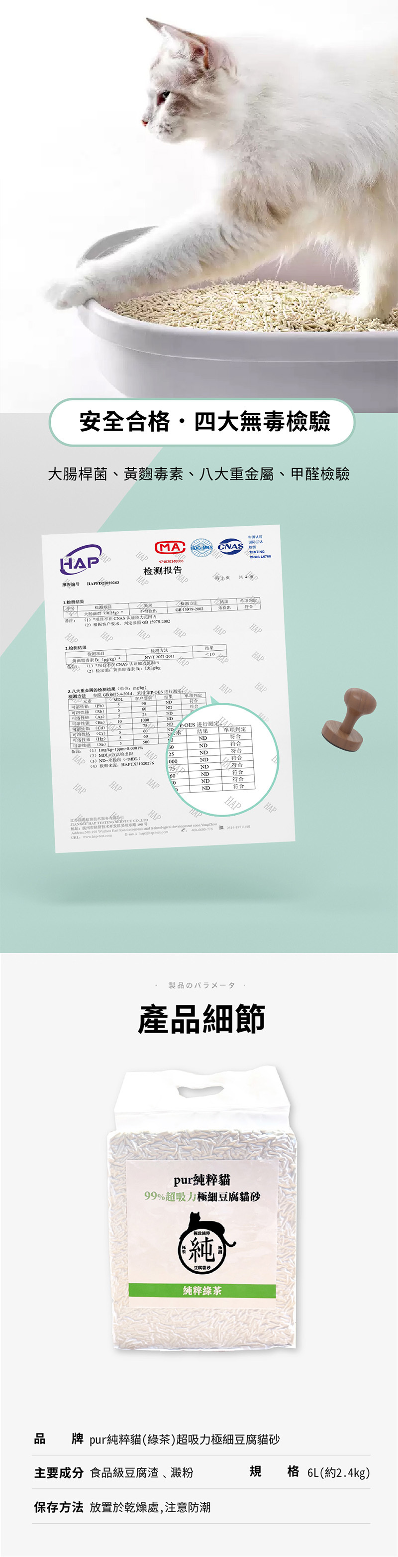 PUR純粹貓 99%超吸力極細2mm豆腐貓砂-綠茶