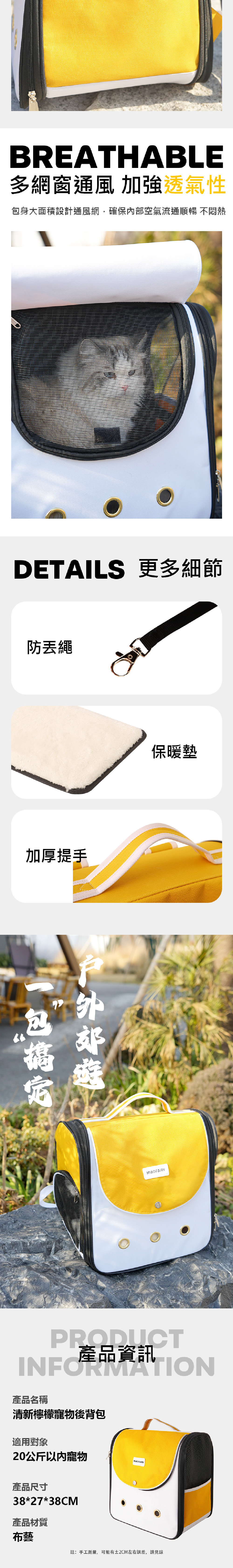 喵仙兒-清新檸檬寵物後背包