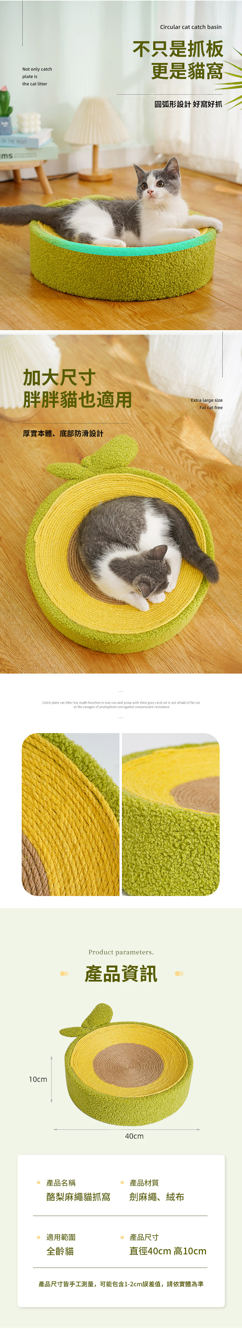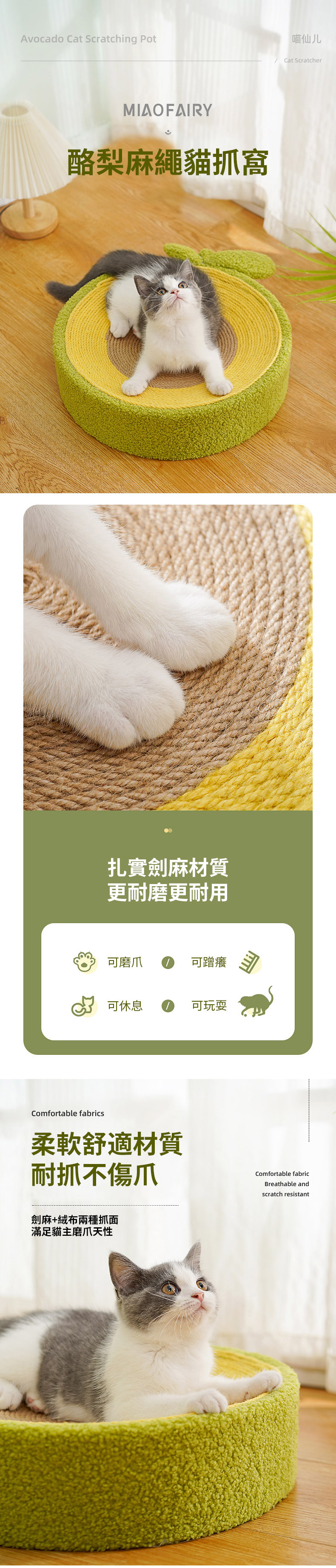 ❤ 喵仙兒-酪梨麻繩貓抓窩 承重約15-20KG